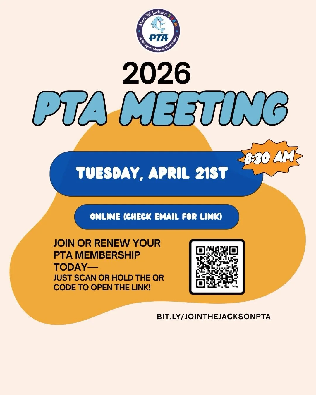 Join the Mary W. Jackson PTA to make a real impact! Strengthen family-school connections, access STEAM & health resources, and advocate for our kids at all levels. By donating or volunteering, you'll benefit your child and the entire school community. PTAs offer a chance to meet other parents, share ideas, and contribute your skills to improve education and support school events. Get involved and help drive positive change for our students!